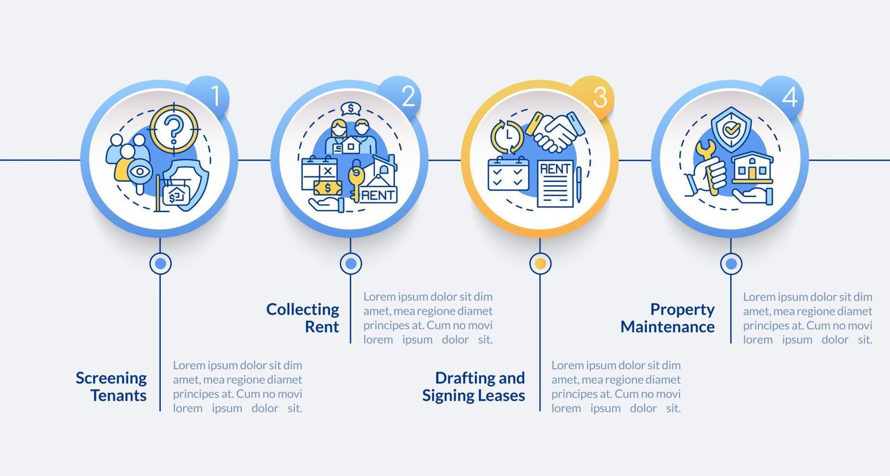 Responsibilities of property manager circle infographic template. Data visualization with 4 steps. Process timeline info chart. Workflow layout with line icons Pro Vector