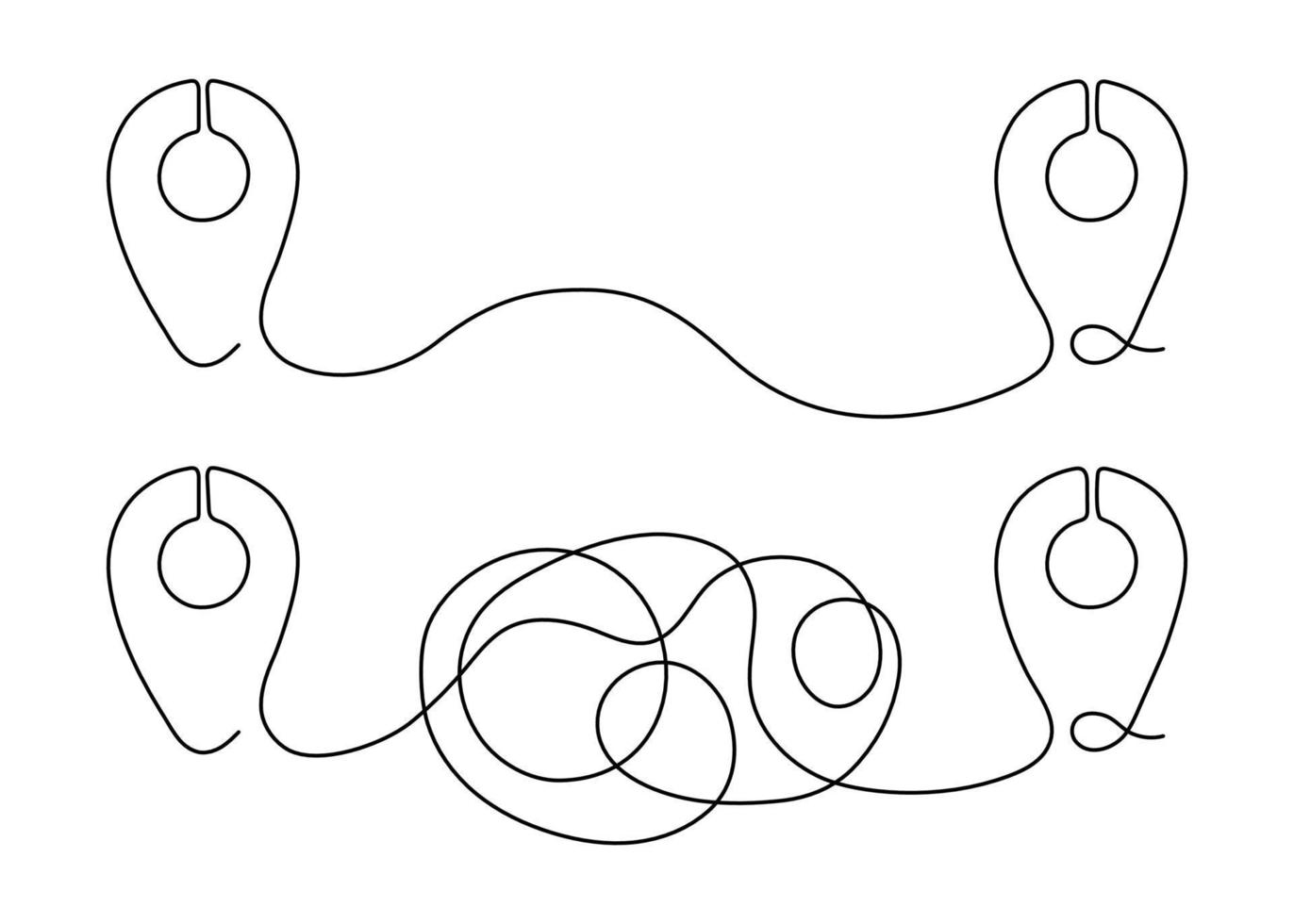 Right and tangled path outline with location point on map, plan of road way destination, continuous one line drawing. Route with pointers. Real chaotic route way and true easy ideal path. Vector Pro Vector
