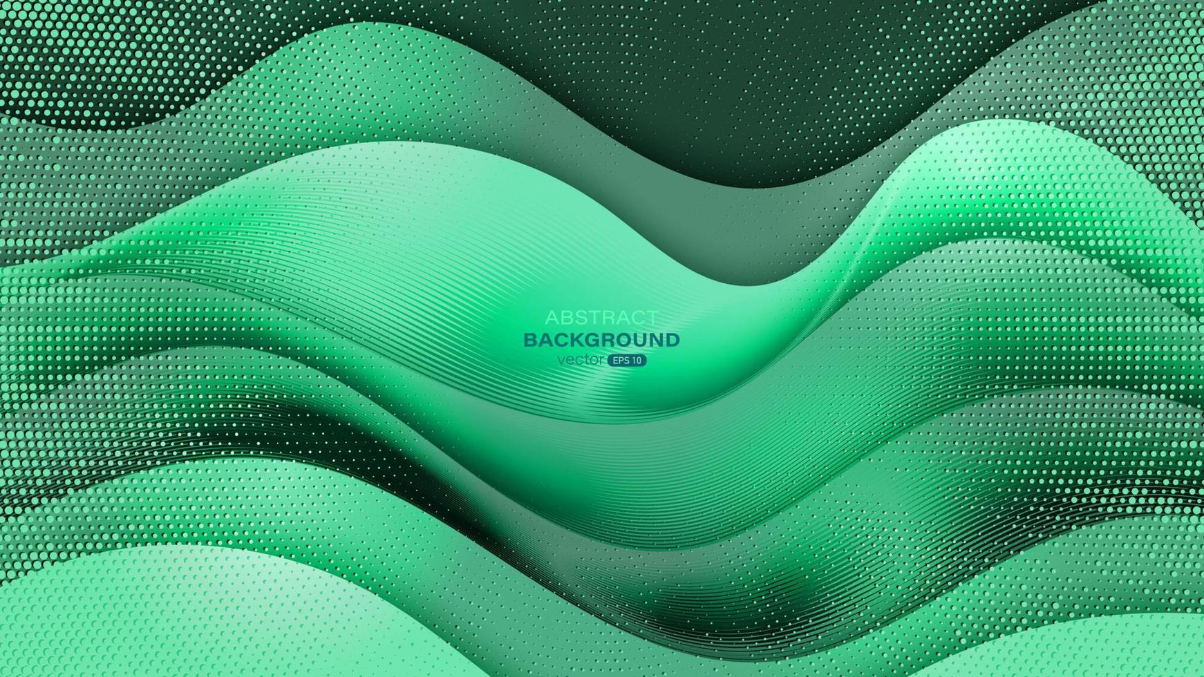 Abstract green wavy dimension background with line wave and dot pattern Pro Vector