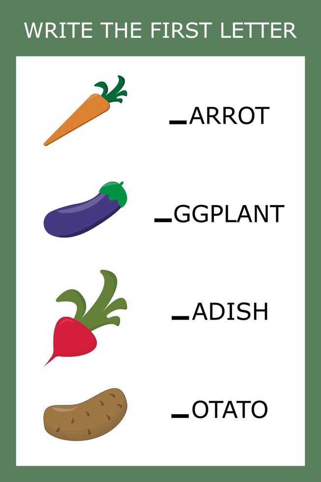 Write the first letter, a game for kids to learn the alphabet. Worksheet for printing. Educational game for children. Pro Vector
