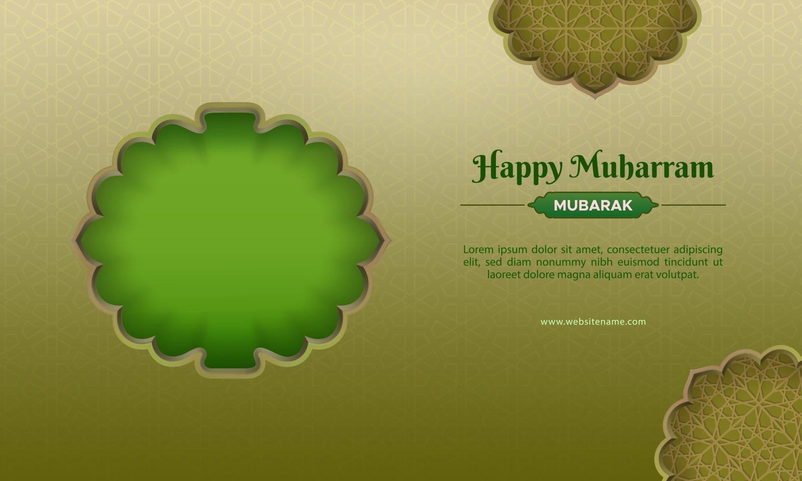 Islamic pattern background for Muharram happy horizontal banner with mosque frame vector