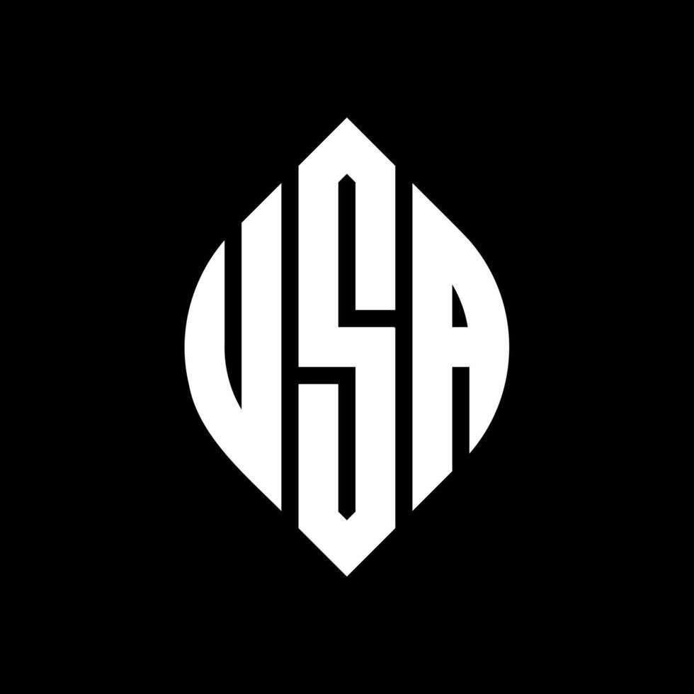 USA circle letter logo design with circle and ellipse shape. USA ellipse letters with typographic style. The three initials form a circle logo. USA Circle Emblem Abstract Monogram Letter Mark Vector. Pro Vector