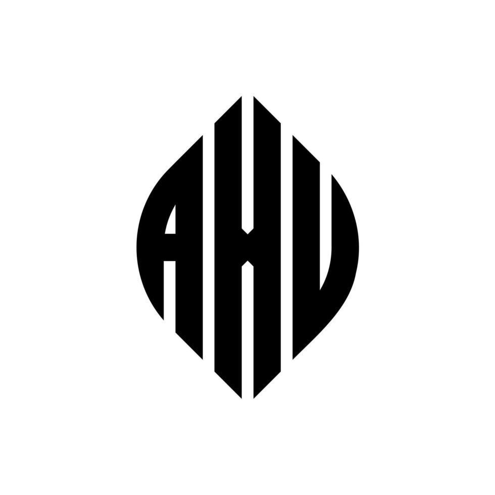AXU circle letter logo design with circle and ellipse shape. AXU ellipse letters with typographic style. The three initials form a circle logo. AXU Circle Emblem Abstract Monogram Letter Mark Vector. Pro Vector