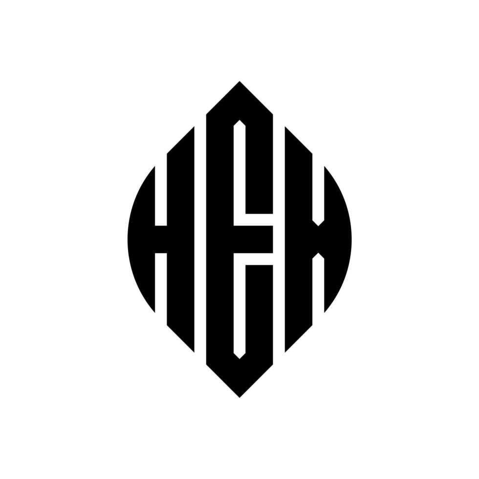 HEX circle letter logo design with circle and ellipse shape. HEX ellipse letters with typographic style. The three initials form a circle logo. HEX Circle Emblem Abstract Monogram Letter Mark Vector. Pro Vector
