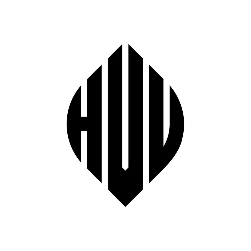 HVU circle letter logo design with circle and ellipse shape. HVU ellipse letters with typographic style. The three initials form a circle logo. HVU Circle Emblem Abstract Monogram Letter Mark Vector. Pro Vector