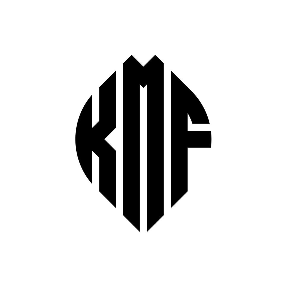 KMF circle letter logo design with circle and ellipse shape. KMF ellipse letters with typographic style. The three initials form a circle logo. KMF Circle Emblem Abstract Monogram Letter Mark Vector. Pro Vector