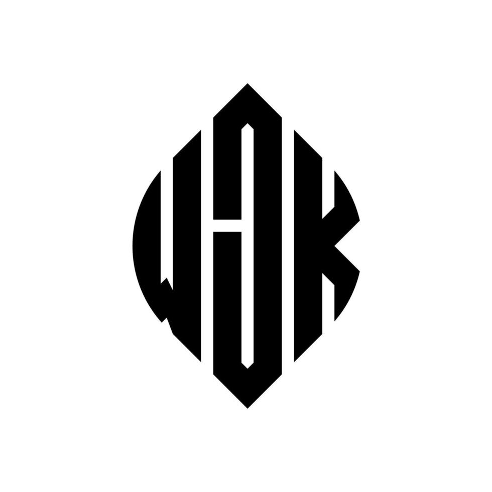 WJK circle letter logo design with circle and ellipse shape. WJK ellipse letters with typographic style. The three initials form a circle logo. WJK Circle Emblem Abstract Monogram Letter Mark Vector. Pro Vector