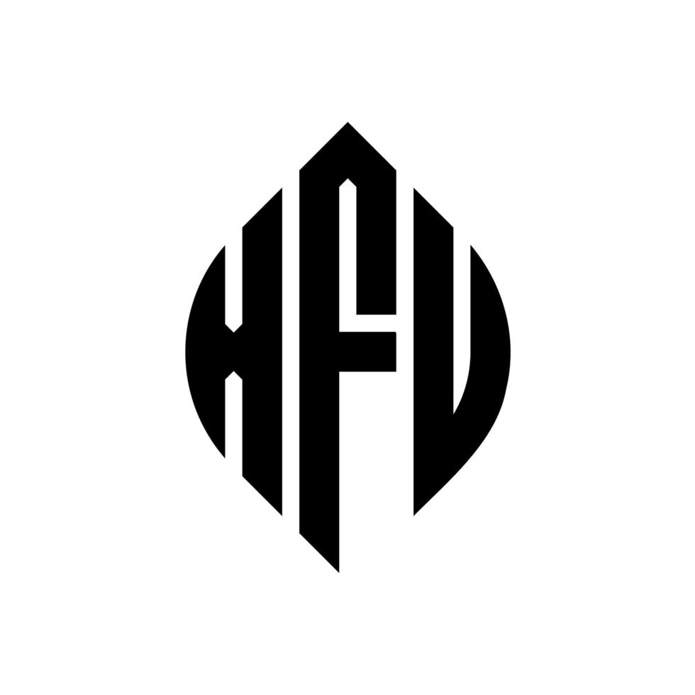 XFU circle letter logo design with circle and ellipse shape. XFU ellipse letters with typographic style. The three initials form a circle logo. XFU Circle Emblem Abstract Monogram Letter Mark Vector. Pro Vector