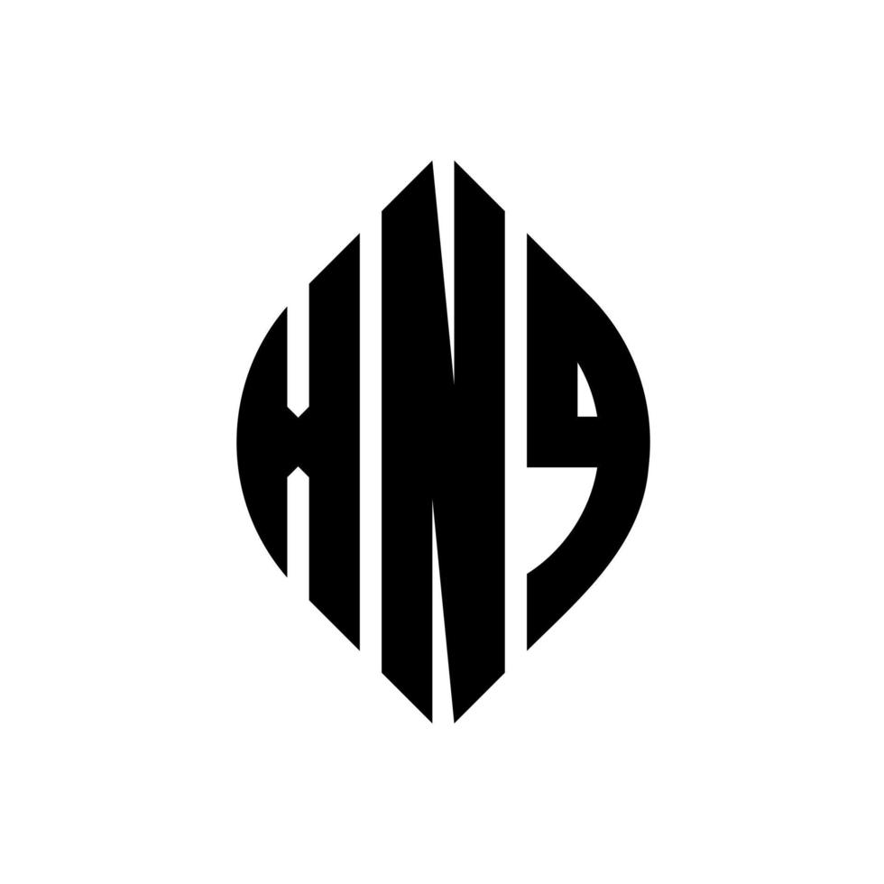 XNQ circle letter logo design with circle and ellipse shape. XNQ ellipse letters with typographic style. The three initials form a circle logo. XNQ Circle Emblem Abstract Monogram Letter Mark Vector. Pro Vector