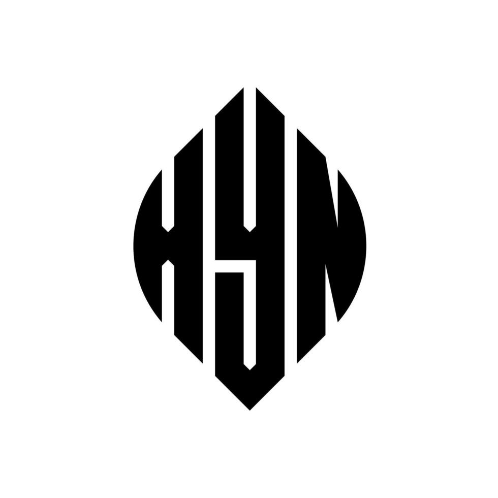 XYN circle letter logo design with circle and ellipse shape. XYN ellipse letters with typographic style. The three initials form a circle logo. XYN Circle Emblem Abstract Monogram Letter Mark Vector. Pro Vector