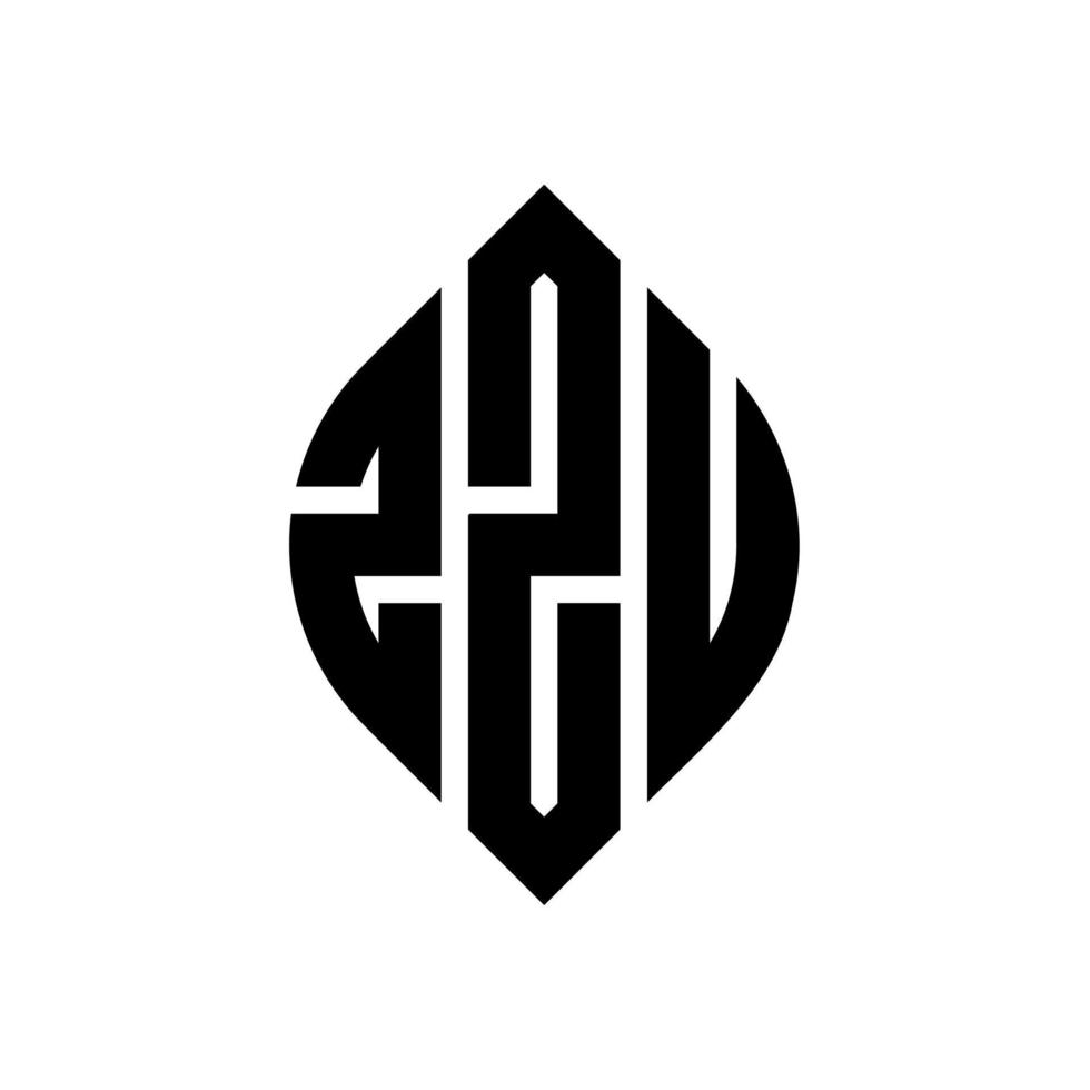 ZZU circle letter logo design with circle and ellipse shape. ZZU ellipse letters with typographic style. The three initials form a circle logo. ZZU Circle Emblem Abstract Monogram Letter Mark Vector. Pro Vector