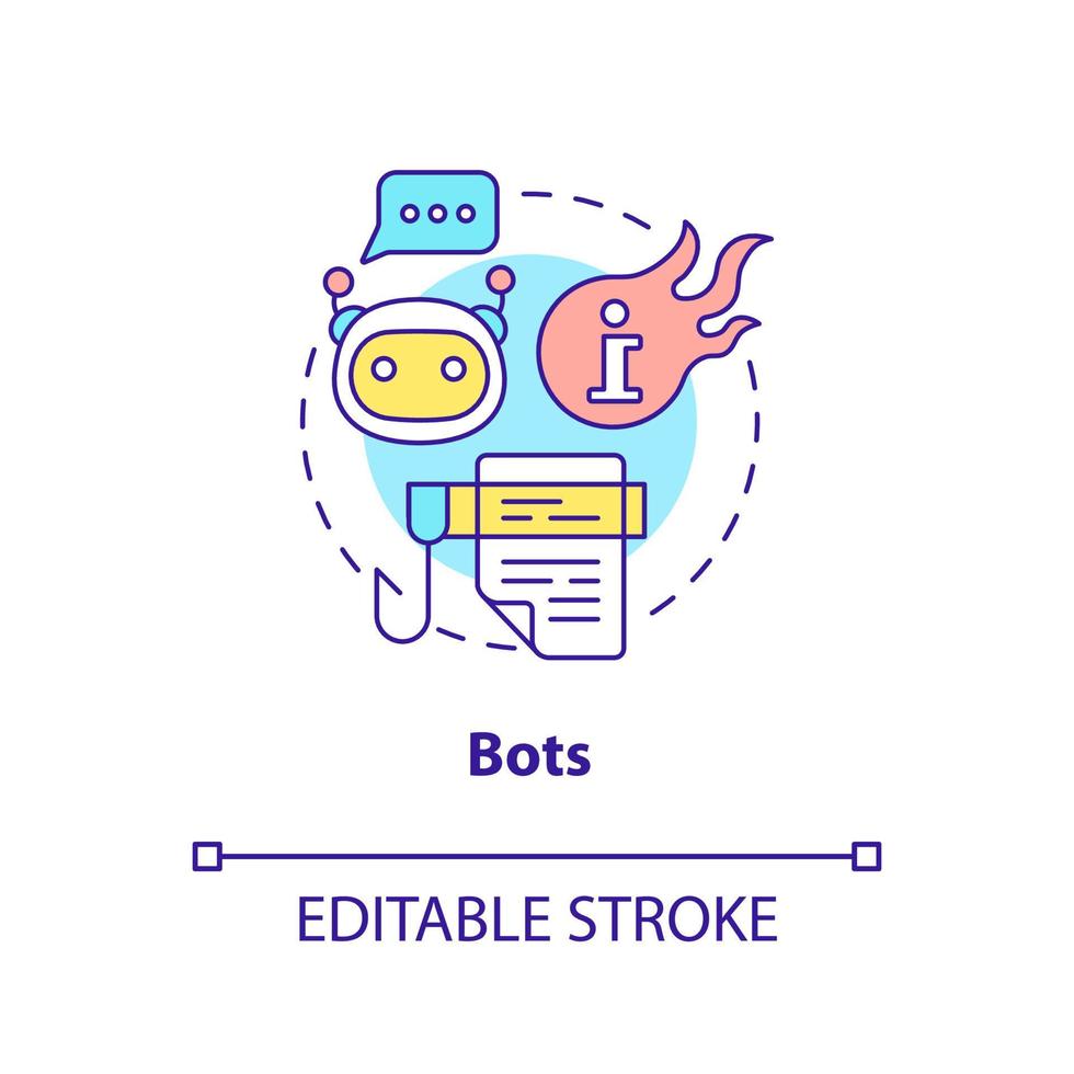 Bots concept icon. Software application. Information war over Internet abstract idea thin line illustration. Isolated outline drawing. Editable stroke. Pro Vector