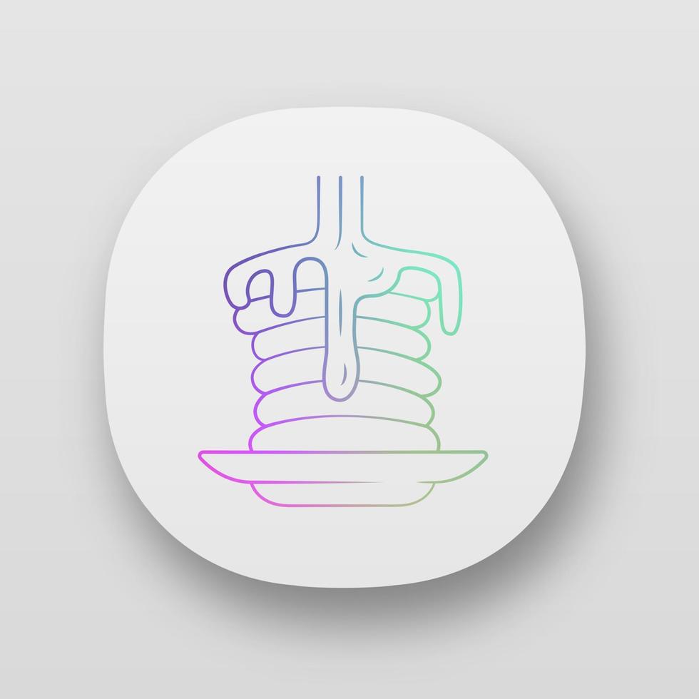 Pancakes with syrup app icon. Traditional american breakfast. Homemade dessert. Pancake stack with honey. Cafe menu. UI UX user interface. Web or mobile applications. Vector isolated illustrations Pro Vector