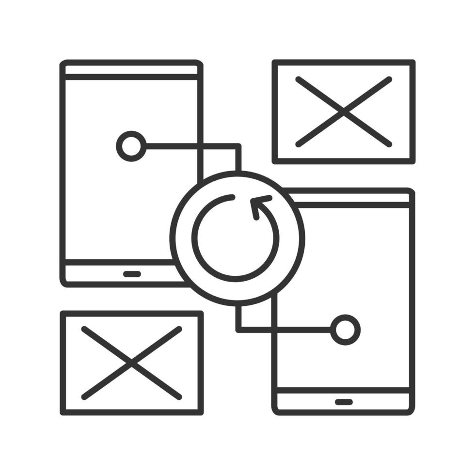 Smartphones synchronization error linear icon. Thin line illustration. Data transfer. No signal or connection error. Contour symbol. Vector isolated outline drawing Pro Vector