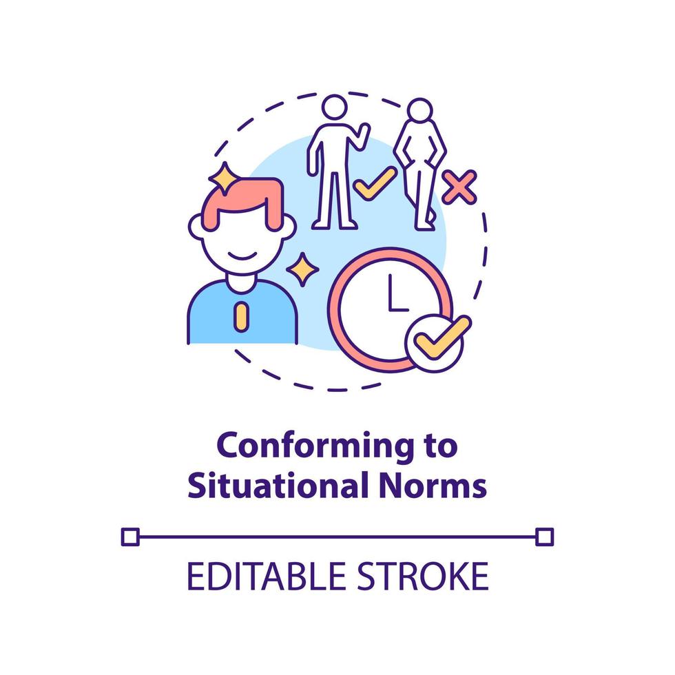 Conforming to situational norms concept icon. Impression management technique abstract idea thin line illustration. Isolated outline drawing. Editable stroke. Pro Vector