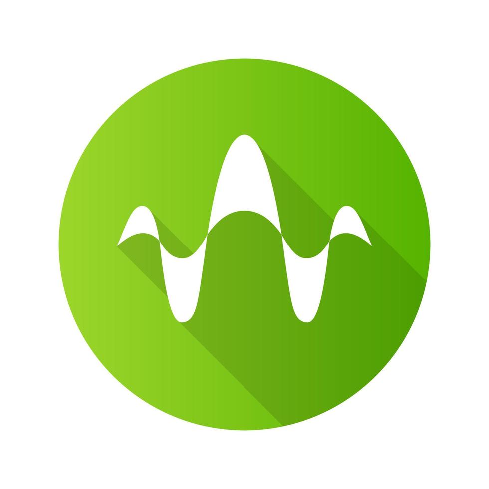 Abstract overlapping waves green flat design long shadow glyph icon. Sound, audio, music rhythm wavy lines. Vibration, noise amplitude level. Abstract digital soundwave. Vector silhouette illustration Pro Vector