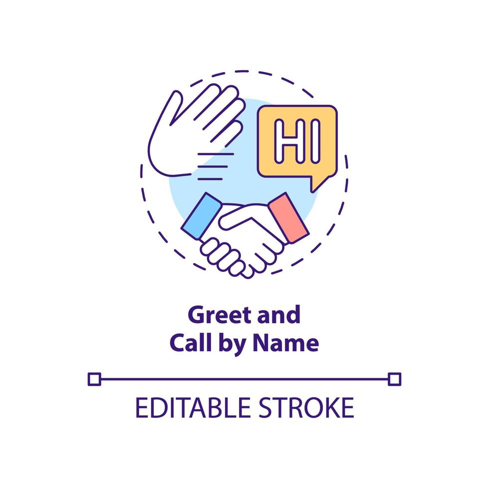 Greet and call by name concept icon. Be polite and friendly. Business etiquette abstract idea thin line illustration. Isolated outline drawing. Editable stroke. Pro Vector