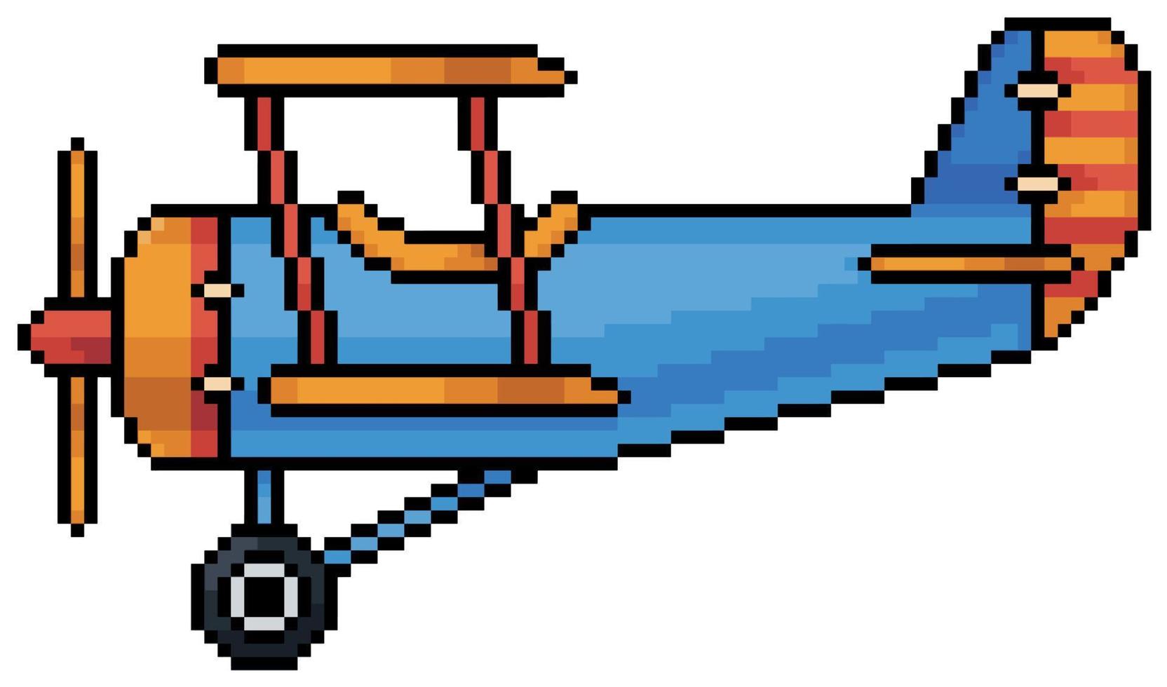 Pixel art biplane plane vector icon for 8bit game on white background Pro Vector