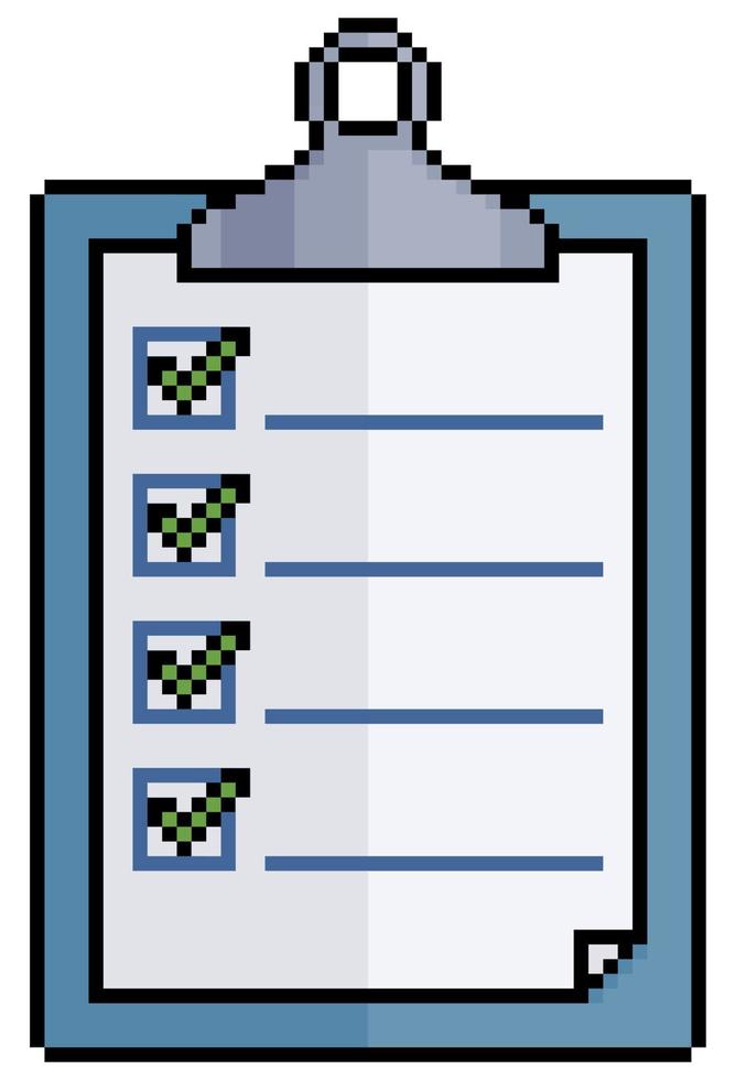 Pixel art clipboard vector icon for 8bit game on white background Pro Vector