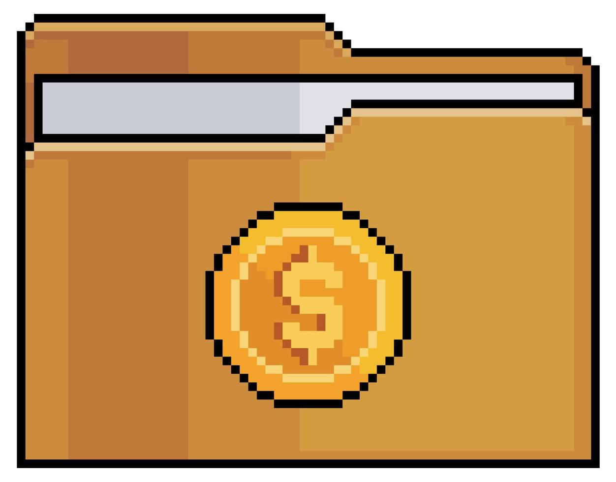 Pixel art folder with coin icon. money folder vector icon for 8bit game on white background Pro Vector
