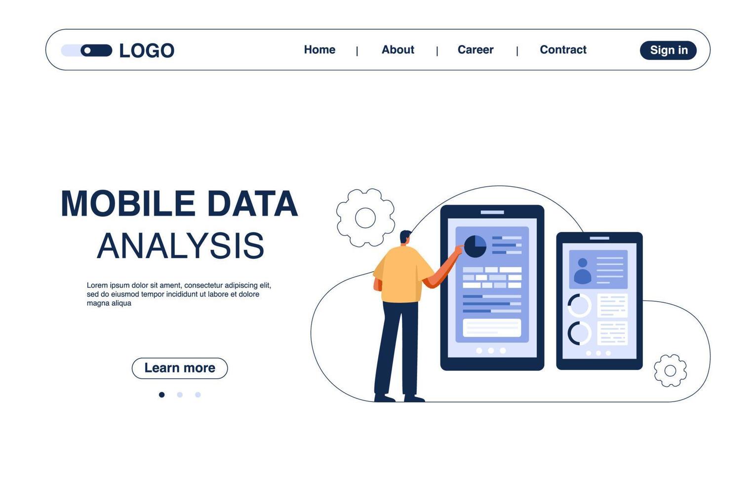 Mobile Data analysis landing page. web banner template. Vector illustration. Pro Vector