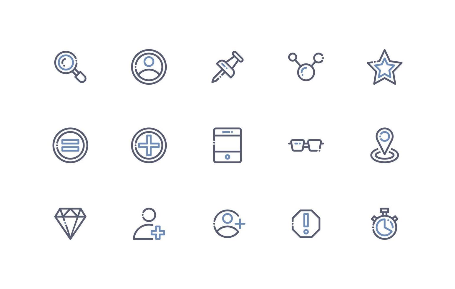 user interface essential icon set in dual tone line, outline style Pro Vector