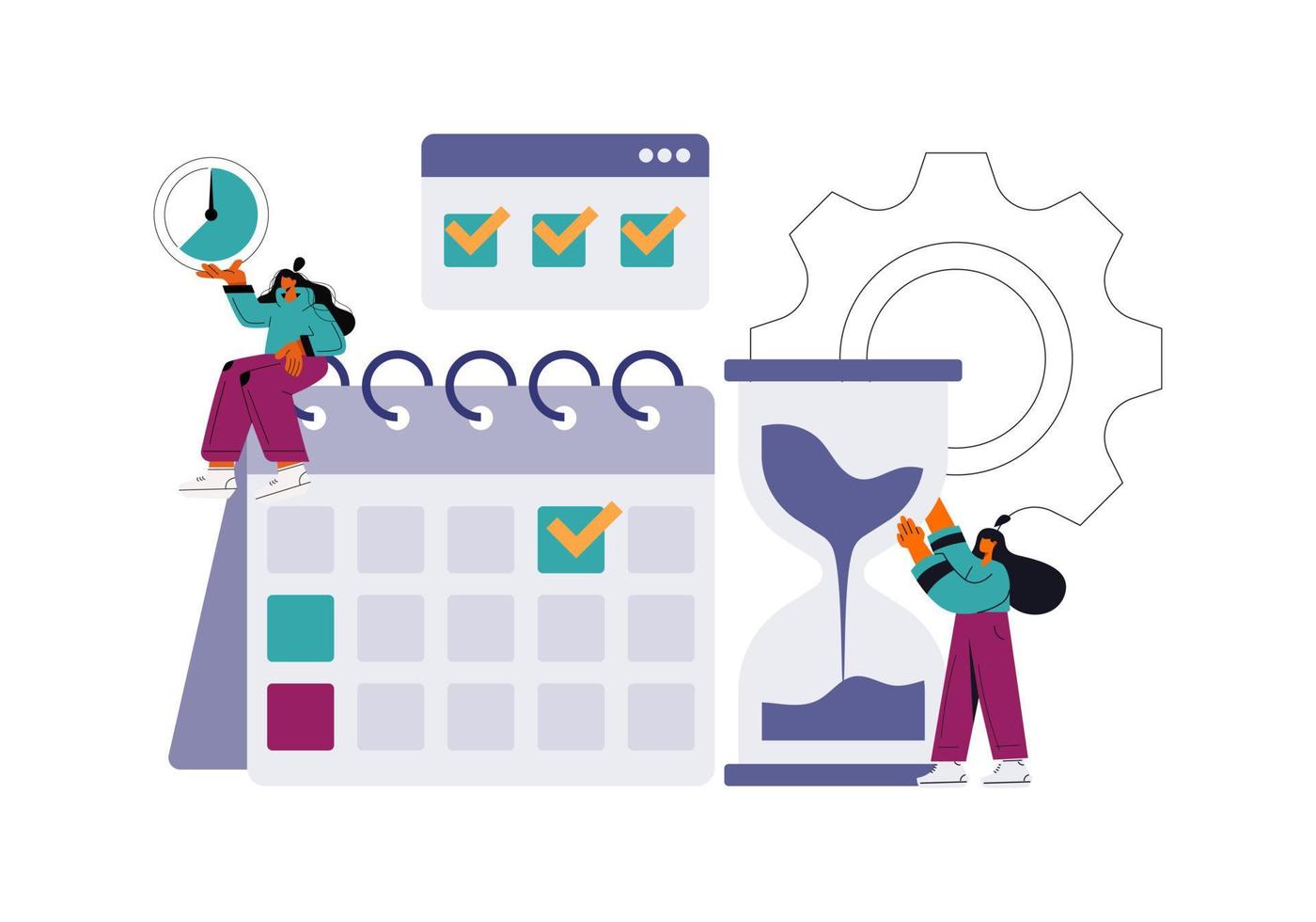 Time management. Projects and deadlines. Time management concept planning, organization, working time. Time organization efficiency. Schedule job project team. Vector flat illustration Pro Vector