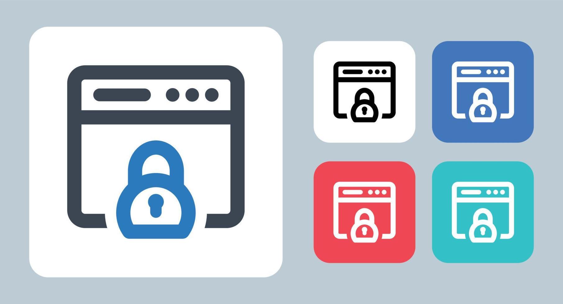 Browser Security icon - vector illustration . Web, Browser, Security, Lock, Privacy, Private, Website, Window, webpage, Page, Internet, site, line, outline, flat, icons . Pro Vector