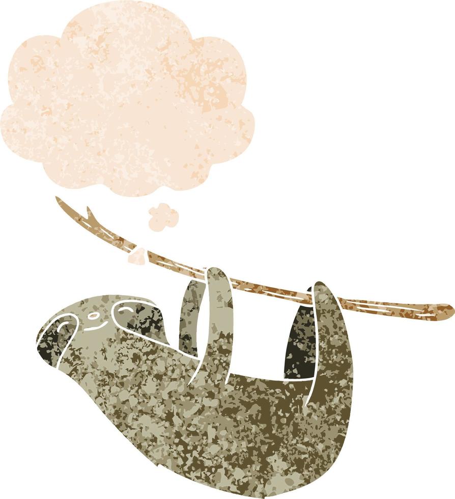 cartoon sloth and thought bubble in retro textured style Pro Vector
