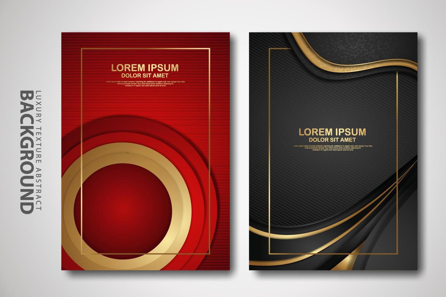 Vector set of cover design template with futuristic and dynamic overlap layers background with glitters effect. Realistic on textured dark background Pro Vector
