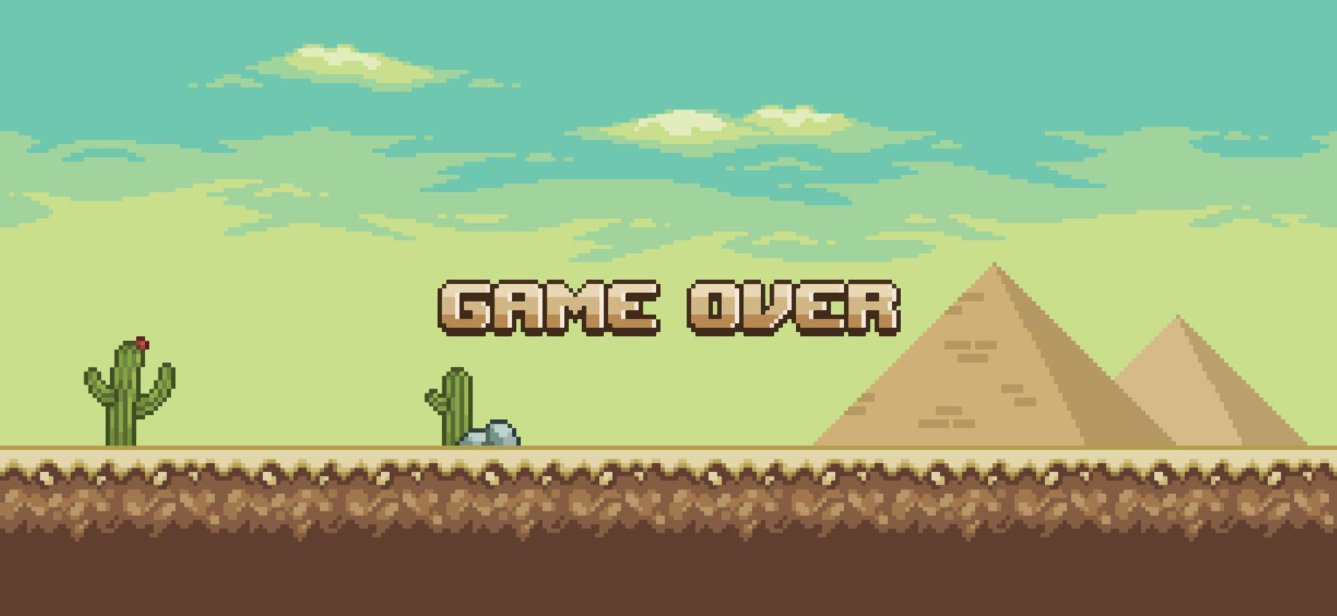 Pixel art desert game landscape game over 8bit background Pro Vector