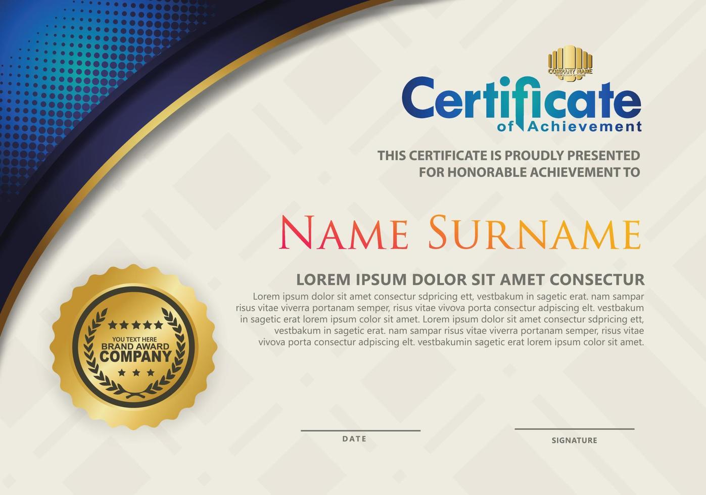 luxury and elegant certificate template with halftone texture on curved shape ornate and modern pattern background Pro Vector