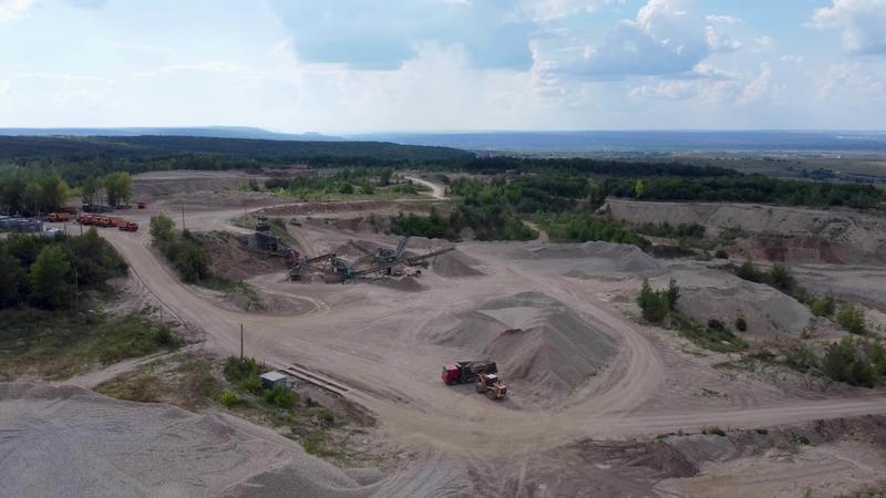 Aerial view of opencast limestone mining quarry with conveyor system. Free Video