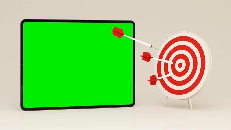 Dart hitting a target on the center on white background with copy space With yellow GOAL letters text and Display graphs and bar graphs on the ground. Minimal concept. 3d render illustration Pro Video