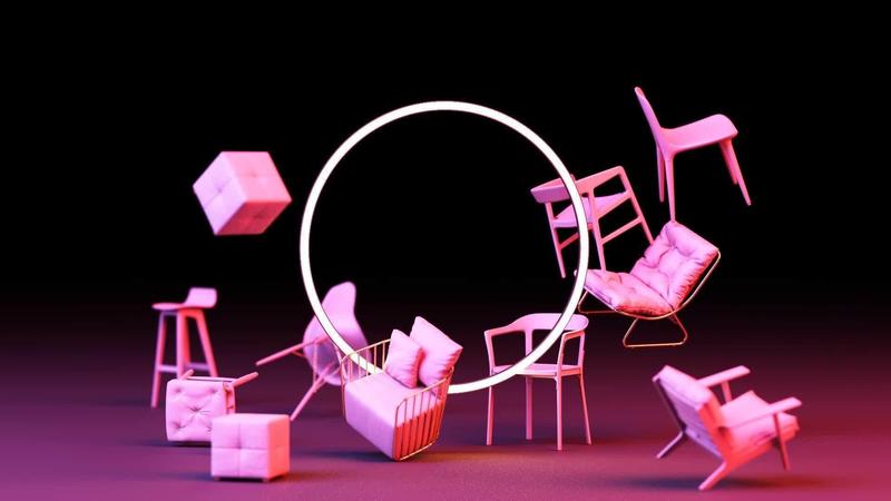 A lot of Chairs and coffee table wooden texture with fabric in colour tone background and geometric shape abstract composition 3d rendering looped animation Pro Video