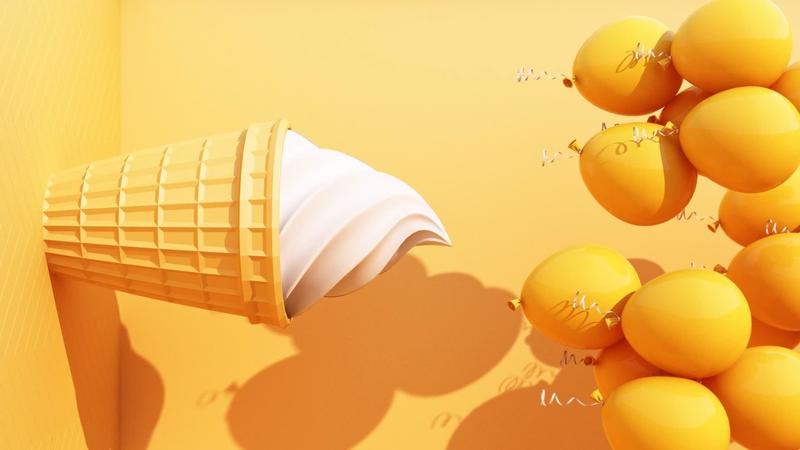3d rendering, yellow balloon flying out and going through the open door, objects isolated on bright yellow background and blue door. Abstract metaphor, modern minimal concept. animation looped Pro Video