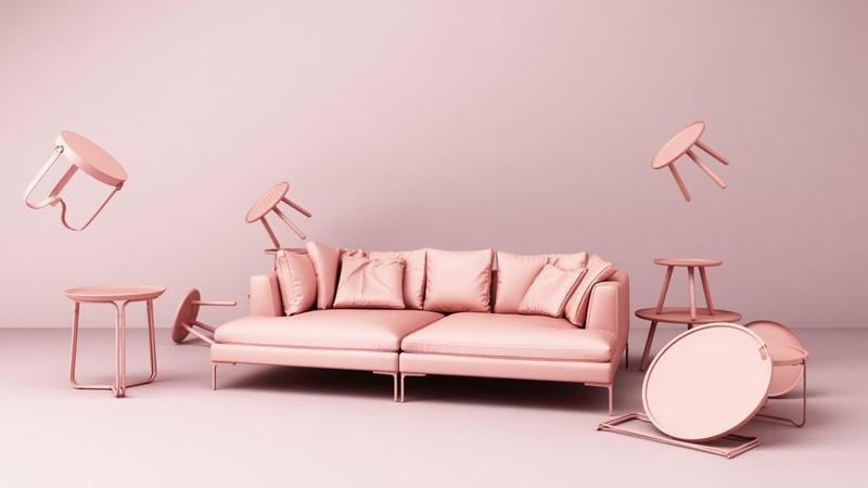 A lot of Chairs and coffee table wooden texture with fabric in colour tone background and geometric shape abstract composition 3d rendering looped animation Pro Video