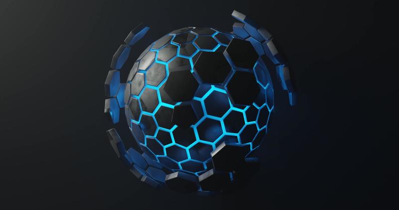 abstract background using a moving ball shape with a bright blue texture with a circular hexagon pattern, 3d rendering, and 4K size Pro Video