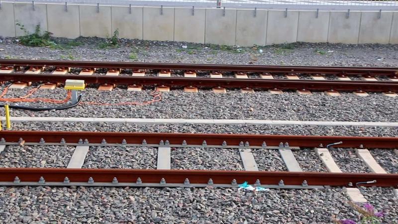 Rusty railway end in urban train station shows end of way in railway network as dead end for trains and transportation or abandoned railway connection with buffer blocks or safety blocks to terminate Pro Video