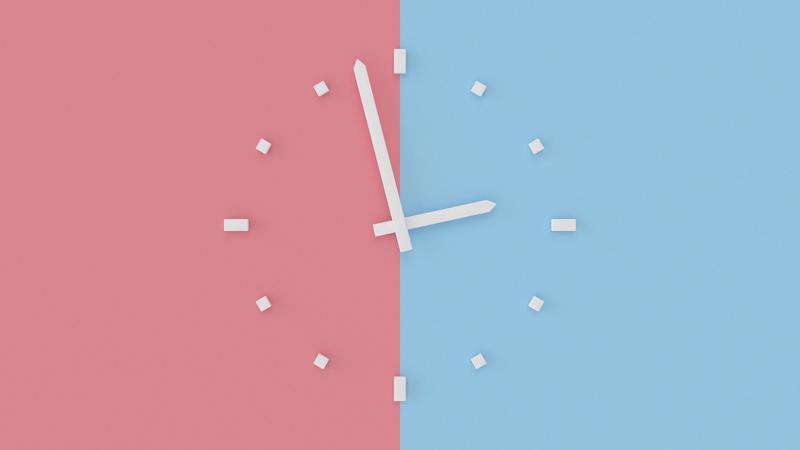 Abstract and minimal face wall clock on pastel background. Trendy modern design representing the time , hours , minutes and seconds . Punctuality at the office or the business. A reminder or routine. Pro Video