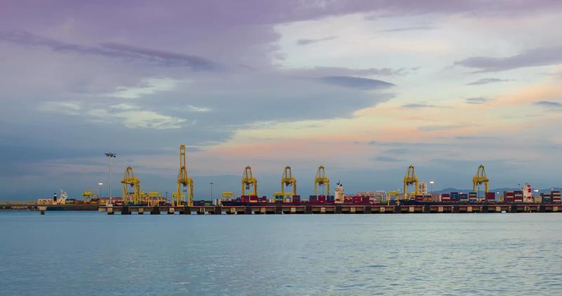 timelapse of deep sea port with cargoship loading and unloading with many cargo containers,import and export freight transportation by container ship Free Video