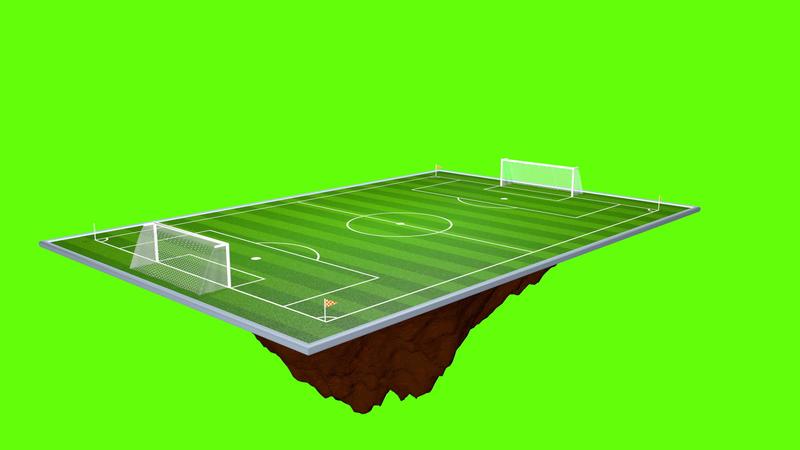 Empty soccer field that floats rotating 360 degrees against chroma key background. 3D Animation Free Video