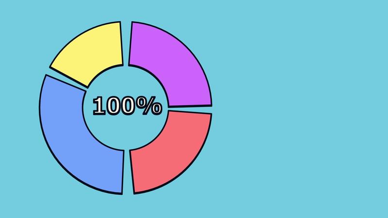 Pie chart consisting of parts of different color in the center of which the indicator is 100 percent. Free Video