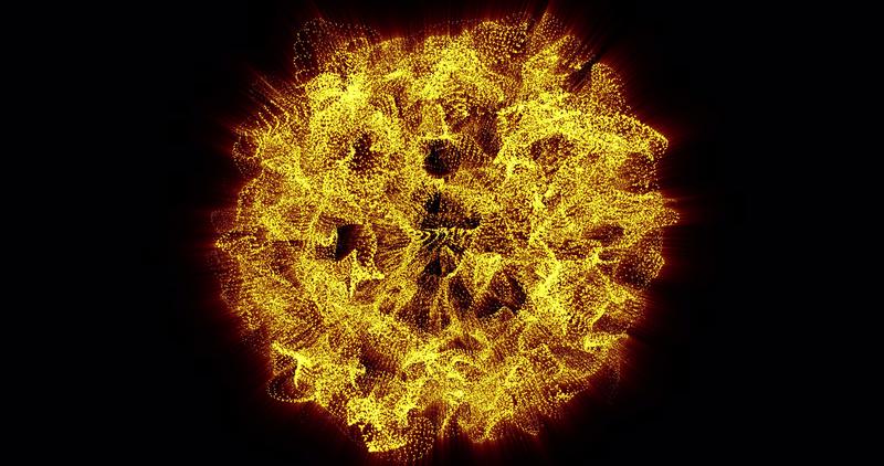 Abstract animation motion design with an unusual beautiful bright glowing star fireball sphere explosion of small particles with rays in space background in high resolution 4k Free Video