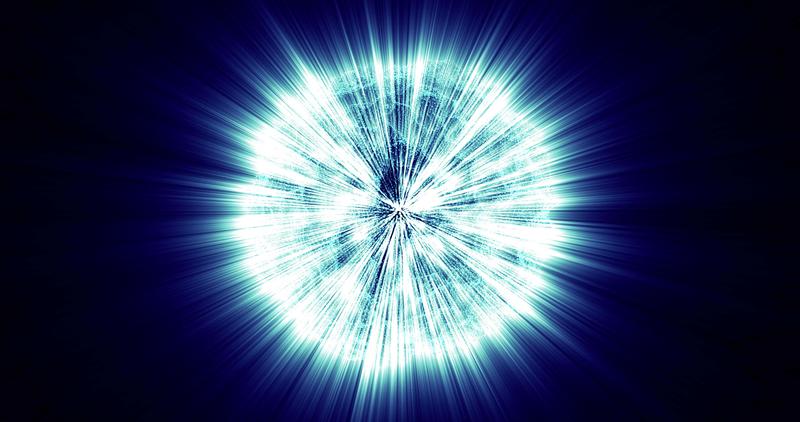 Abstract animation motion design with an unusual beautiful bright glowing explosion of a star of a blue ball of a sphere of small particles with rays in space background in high resolution 4k Free Video