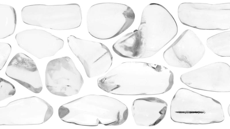 Clear quartz stones isolated set. Macro closeup texture background. Moving right seamless loop backdrop. Pro Video