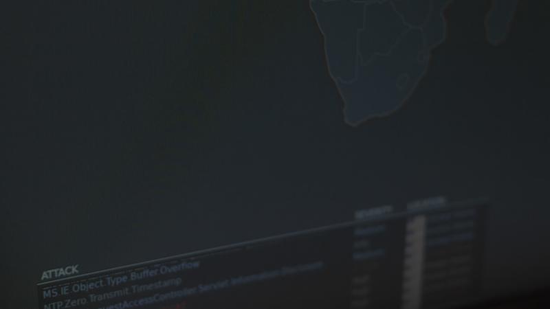 World map with different targets for cyber attack. Hacking and technology concept. Macro shooting at monitor pixels
