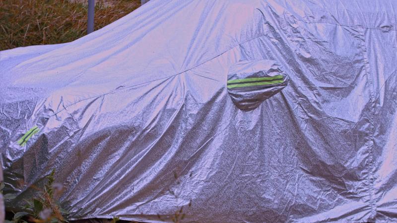 Presentation of car concept, podium with auto covered red cloth, revolves around, animation concept. 3D rendering isolated on black background Free Video