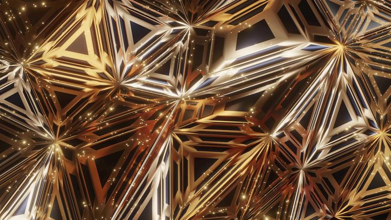 4k abstract luxury triangle geometric black with gold glitter glowing. in triangle motion move in and out.motion animation. Seamless loop dark backdrop. Pro Video