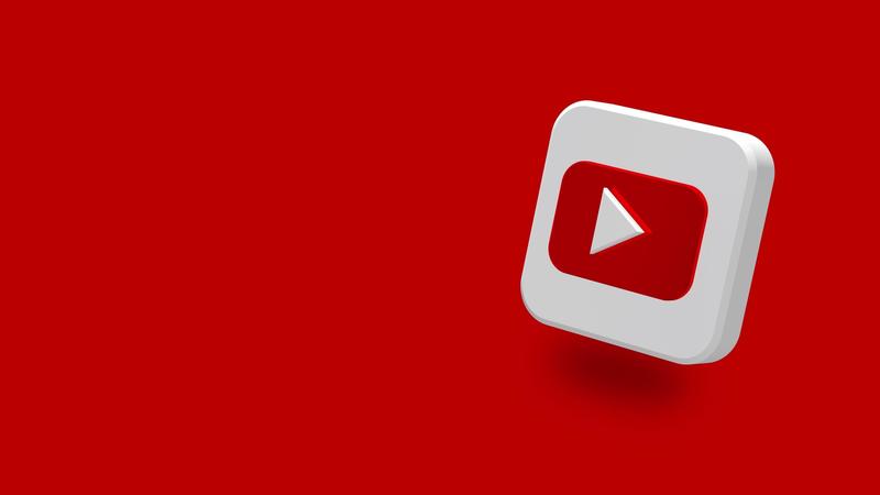 YouTube App Large Size 3D Icon Rotating, Space for Text on Right Side, 3D Rendering, Chroma Key, Luma Matte Selection, Lower Third 3D Icon